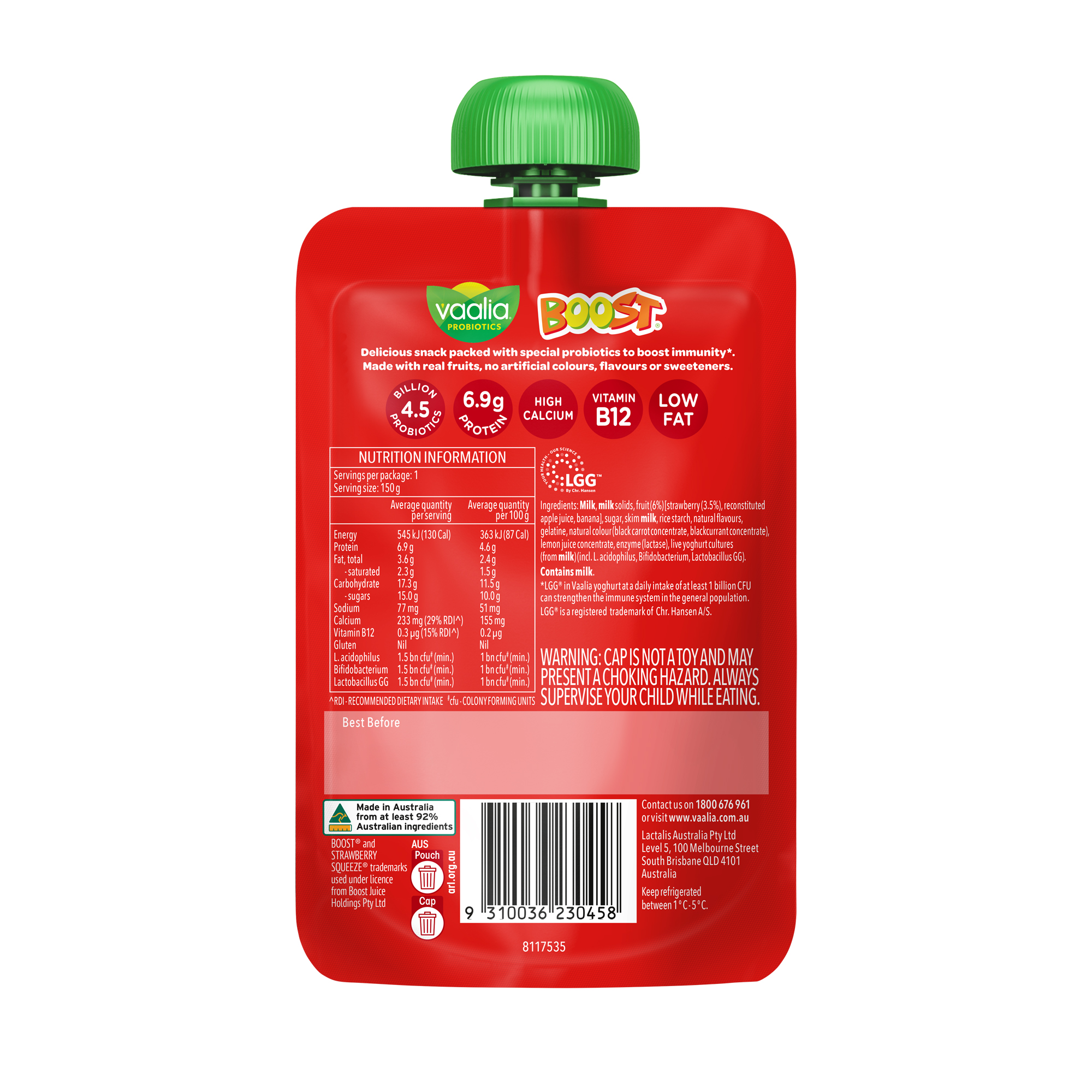Your favourite probiotic yoghurt has teamed up with Boost®! Introducing Vaalia Boost® Strawberry Squeeze®, a delicious yoghurt made with real fruits and no artificial colours, flavours or sweeteners.