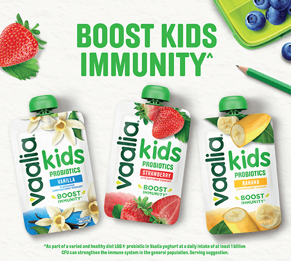 Vaalia Kids yoghurt is deliciously creamy yoghurt that helps kids feel good. Made with 3 probiotics including LGG ® which can help strengthen the immune system*, making it the perfect snack for the lunchbox or on the go.