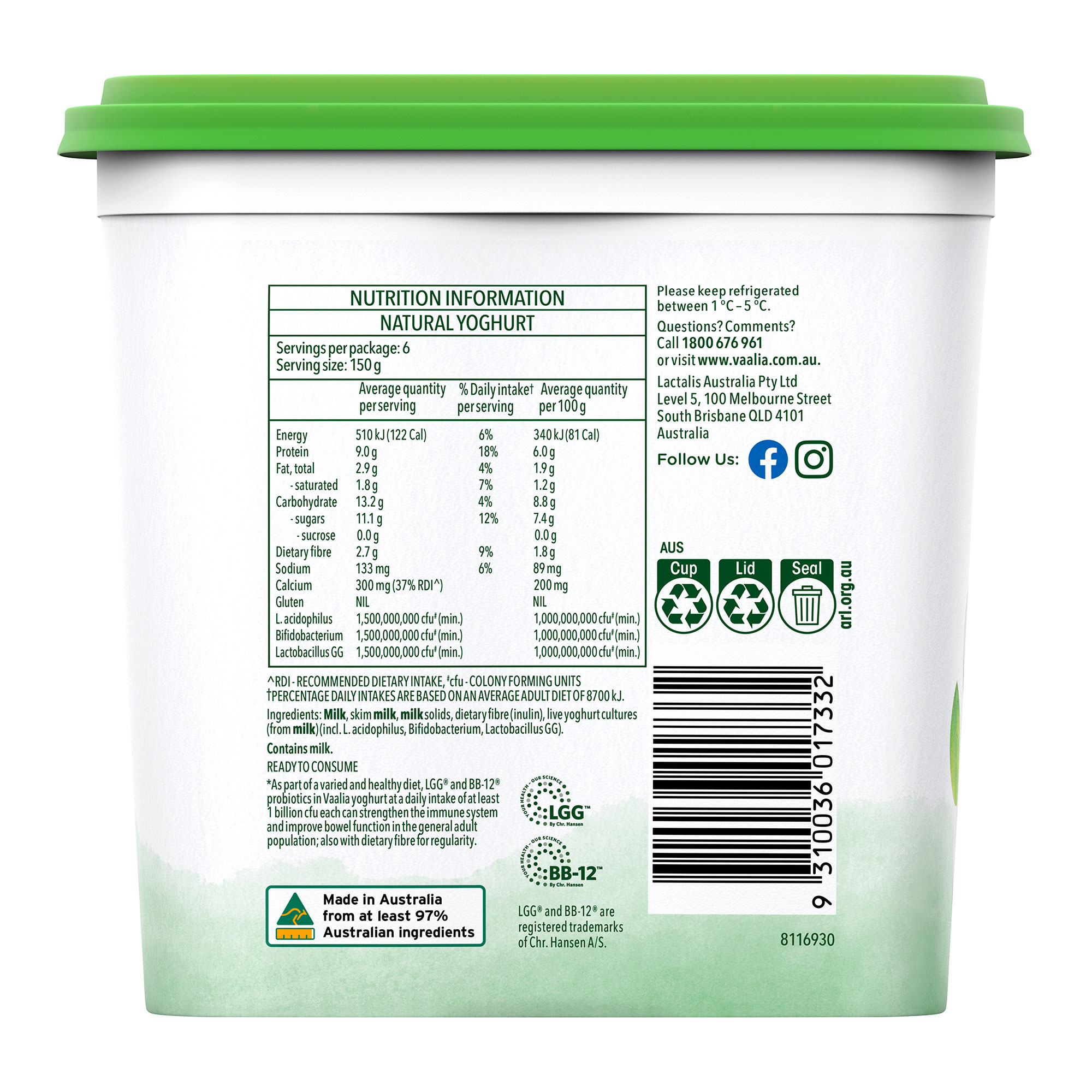 Vaalia Natural Yoghurt is a premium probiotic yoghurt that contains a special combination of 3 probiotics including LGG® and BB-12® to help strengthen your immune system and digestion.*