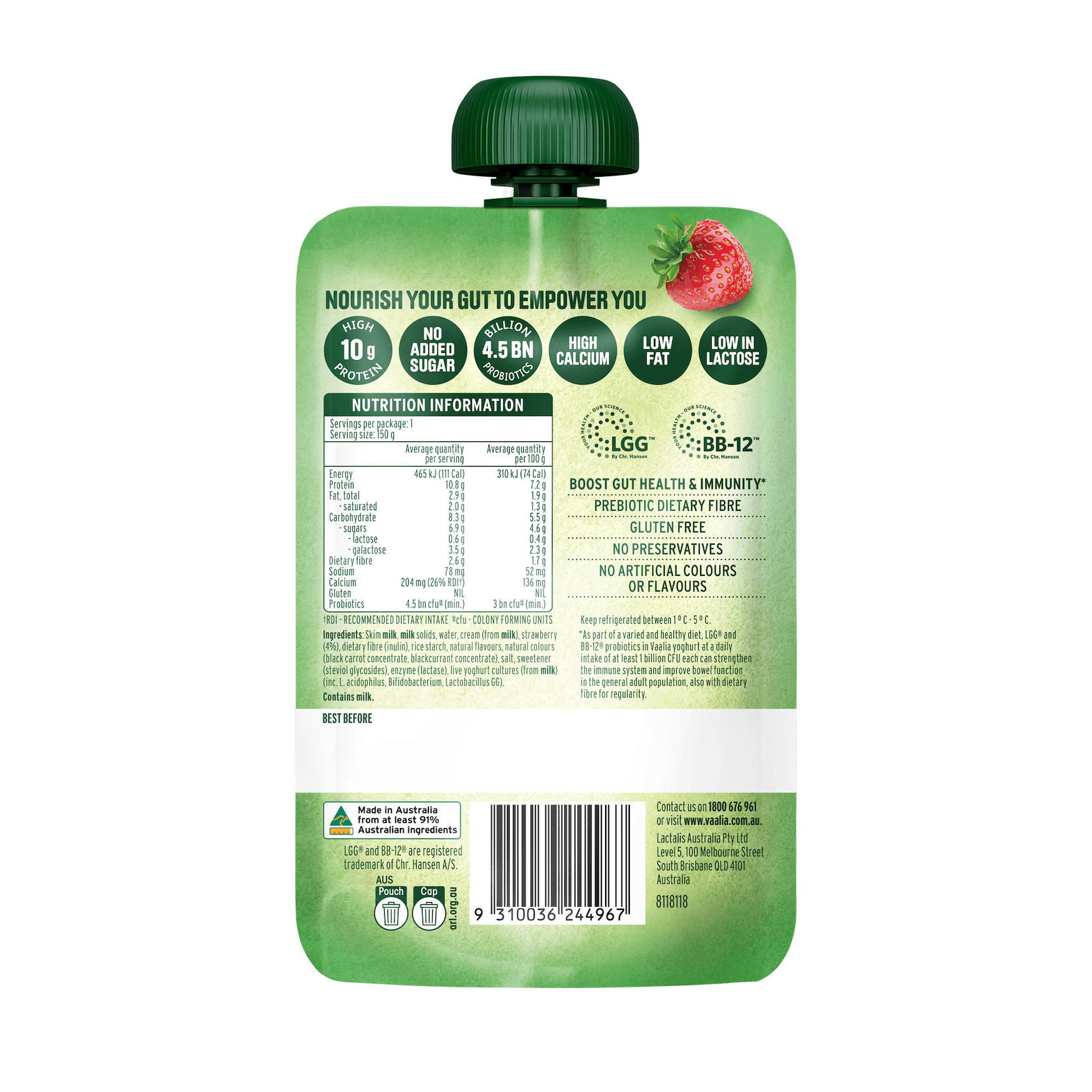 Vaalia Probiotics + Protein Strawberry Pouch 150 G