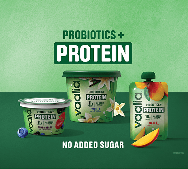 Vaalia Probiotics + Protein is a deliciously creamy probiotic yoghurt, high in protein with no added sugar for your overall wellbeing.